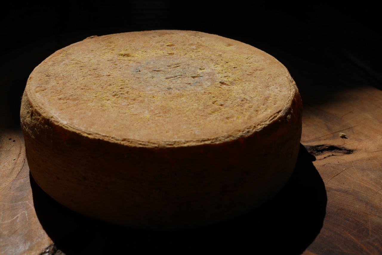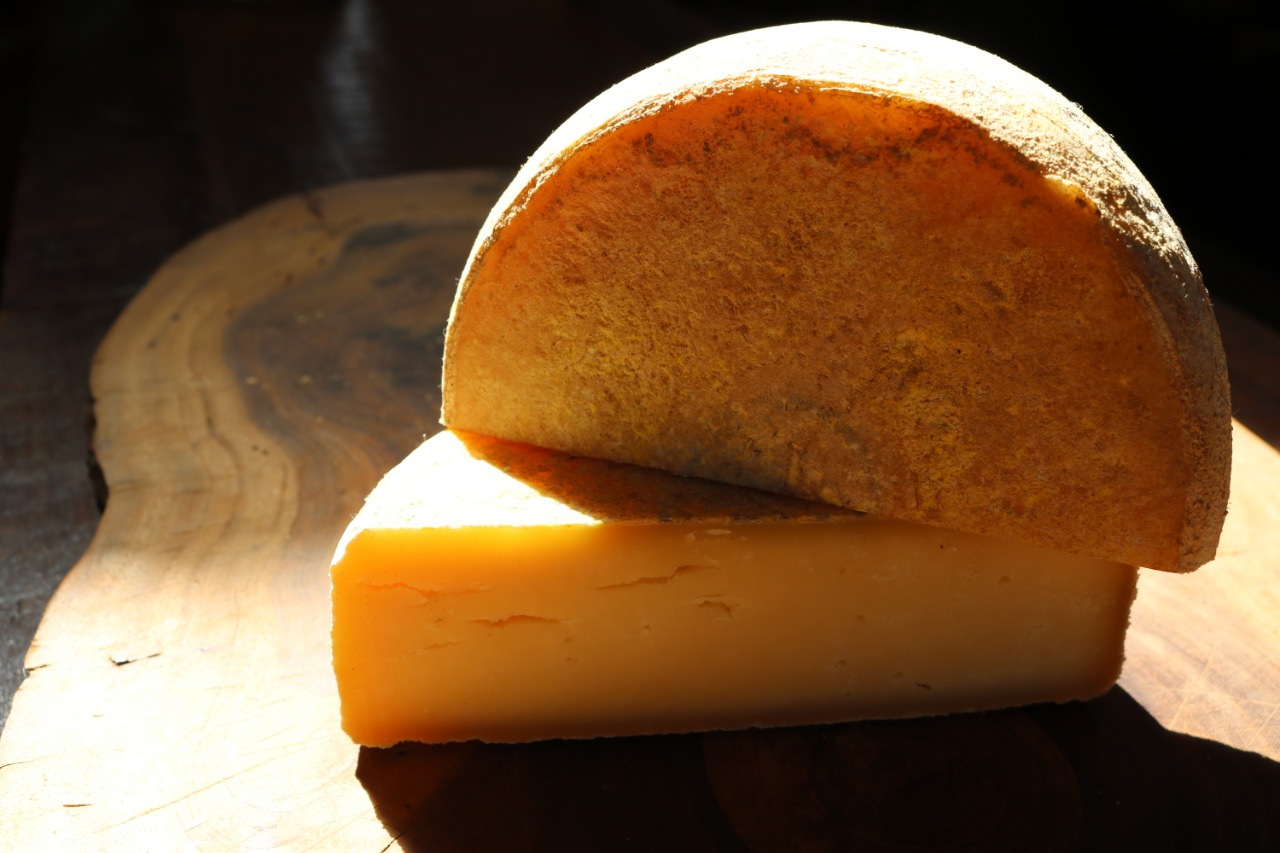 Queijo maturado em cave, ambiente controlado, aproximadamente 900g.